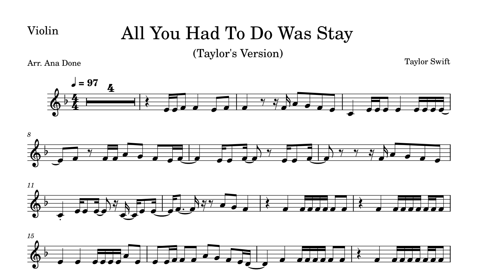 All You Had To Do Was Stay (Violin Sheet Music)