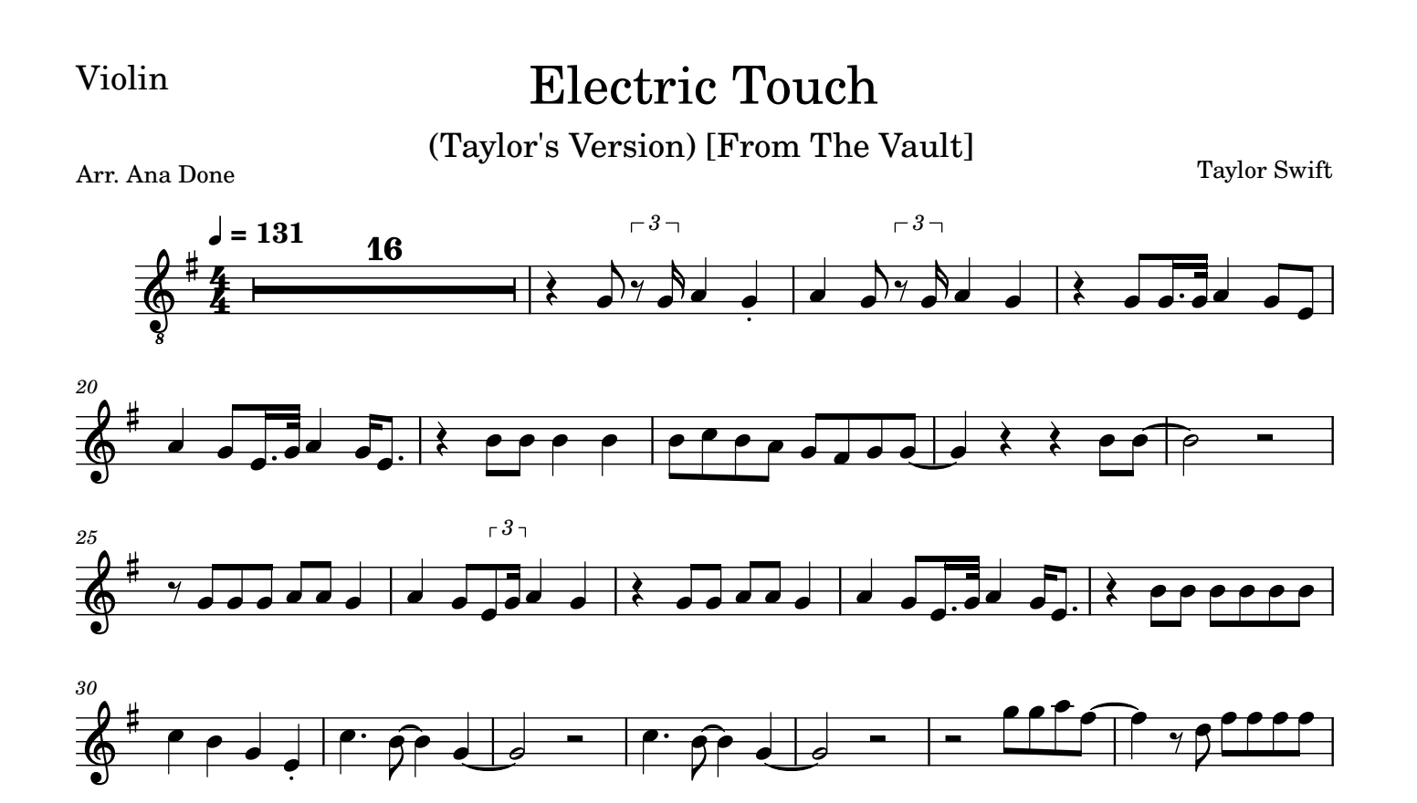 Thanks for checking out my covers. If you're a violinist, all of my arrangements are based mainly on my own style and how I play each song. Oftentimes I take creative and improvisational liberties that might not be notated. Find your own style and add your own flair as you learn to play each song.